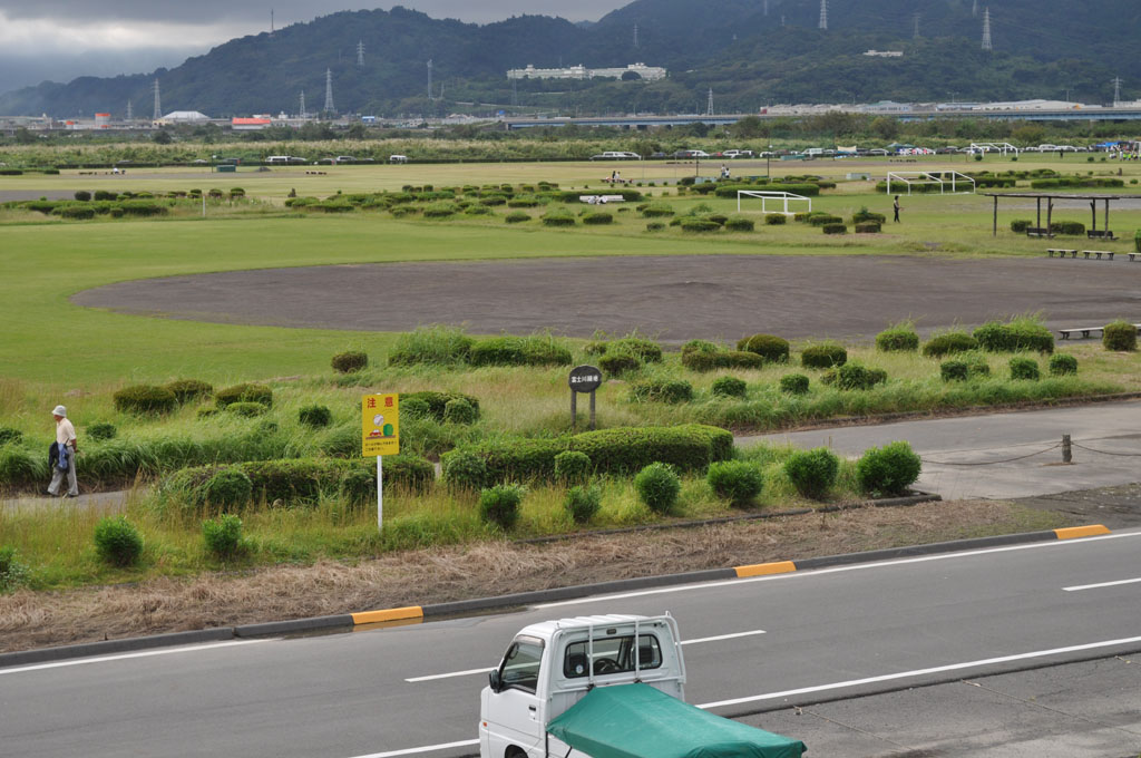 両腕に妙に力が入り、視線をまっすぐ前に固定したまま、何とか走りきると、終点っぽいところに、はじめ(1枚目)の写真のような公園に出ました。まだまだ公園拡張中のようです。富士市は、公園とか住民サービスが充実してますなw