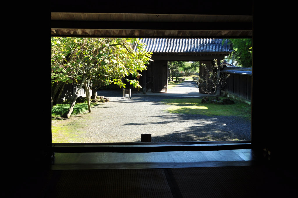 玄関座敷から正門を望む。左手に江川塾の部屋。右手に使者の間と控えの間。